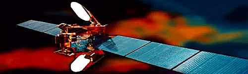 ausgehend von der Sendestation über den Satelliten zu rasen,
